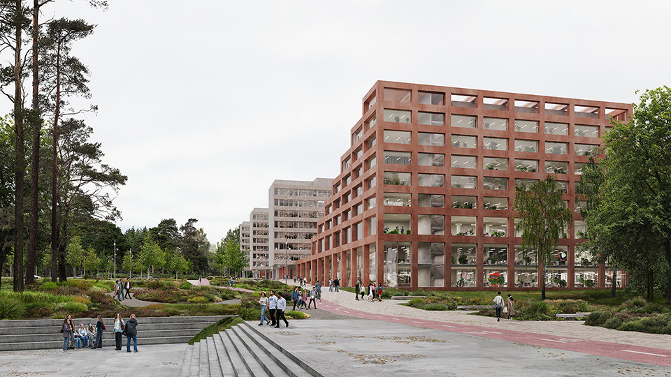 Autorių teigimu, siūlomas sprendinys siekia ne tik architektūrinio vientisumo, bet ir socialinės jungties: siūloma nauja erdvių sistema, leisianti dažniau neplanuotai susitikti – visi keliai veda į vieną pagrindinį įėjimą po dengtu kiemu. Integruotas miško siluetas, kompaktiški, jaukūs kiemai ir patogus susisiekimas dviračiais kuria aplinką, kurioje darniai dera akademinė veikla, bendruomenės poreikiai ir tvari urbanistinė vizija.