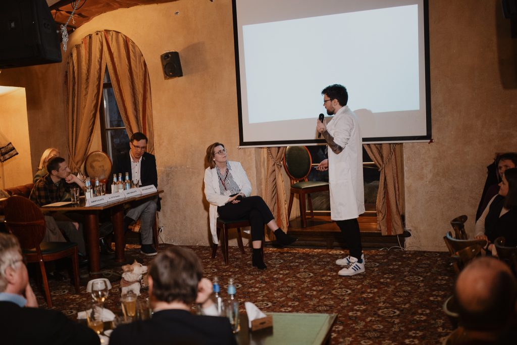 Vilniaus universiteto Gyvybės mokslų centro doktorantas Igoris Nagula ir bakalauro studentė Gabija Valentaitė tiria, kaip ankstyvuoju postnataliniu laikotarpiu vystosi hipokampo neuronų elektrofiziologinės savybės ir vyksta sinapsių genėjimo procesai. Savo tyrimą jie pristatė „Mokslo sprinto“ konkurse ir pelnė antrąją vietą. Scenoje tyrėjai pasirodė su laboratoriniais chalatais, kad atkurtų kasdien laboratorijose vykstantį mokslininkų dialogą.