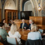 Atstovai iš Stanfordo universiteto bibliotekos susitiko su VU rektoriumi prof. Rimvydu Petrausku, mokslo prorektoriumi prof. Gintaru Valušiu ir VU partnerystės prorektoriumi dr. Artūru Vasiliausku, dalyvavo ekskursijoje po VU biblioteką ir Senąją astronomijos observatoriją.