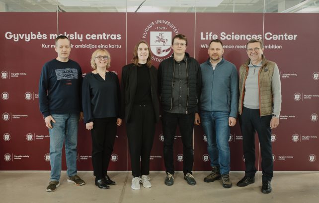 Vilniaus universiteto Gyvybės mokslų centro (VU GMC) mokslininkai dokt. Ugnė Gaižauskaitė, dr. Giedrė Tamulaitienė, dr. Arūnas Šilanskas, dr. Giedrius Gasiūnas, prof. Virginijus Šikšnys ir dr. Giedrius Sasnauskas ištyrė, kaip bakterinis baltymas Cas9, geriau žinomas kaip CRISPR-Cas genų žirklės, padeda bakterijoms į genomą įsistatyti jas infekuojančių virusų – bakteriofagų – DNR fragmentus, ir taip įgyti atsparumą virusams.